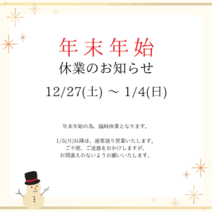金 赤 白 シンプル 年末年始 休業のお知らせ インスタグラム投稿